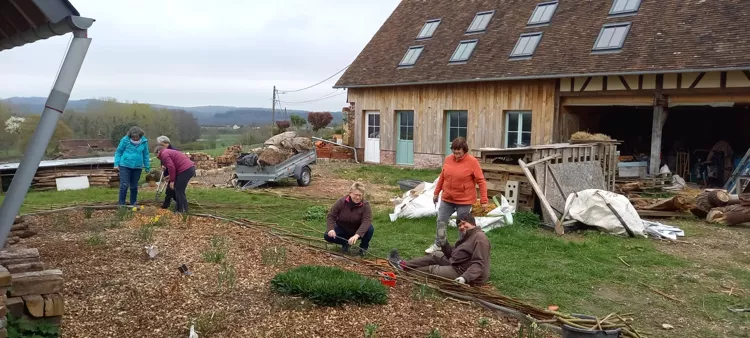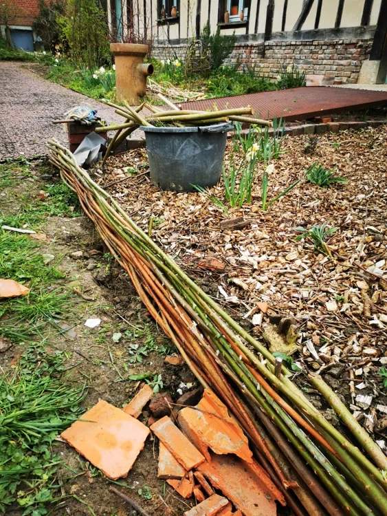- Un groupe de warriors de l'atelier vannerie s'est attelé à réaliser une magnifique bordure de la nouvelle platebande, en utilisant nos réserves d'osier de gros calibre. Il y a de quoi être fier ! Avec la tontine réalisée par Maryse, le jardin s'embellit.