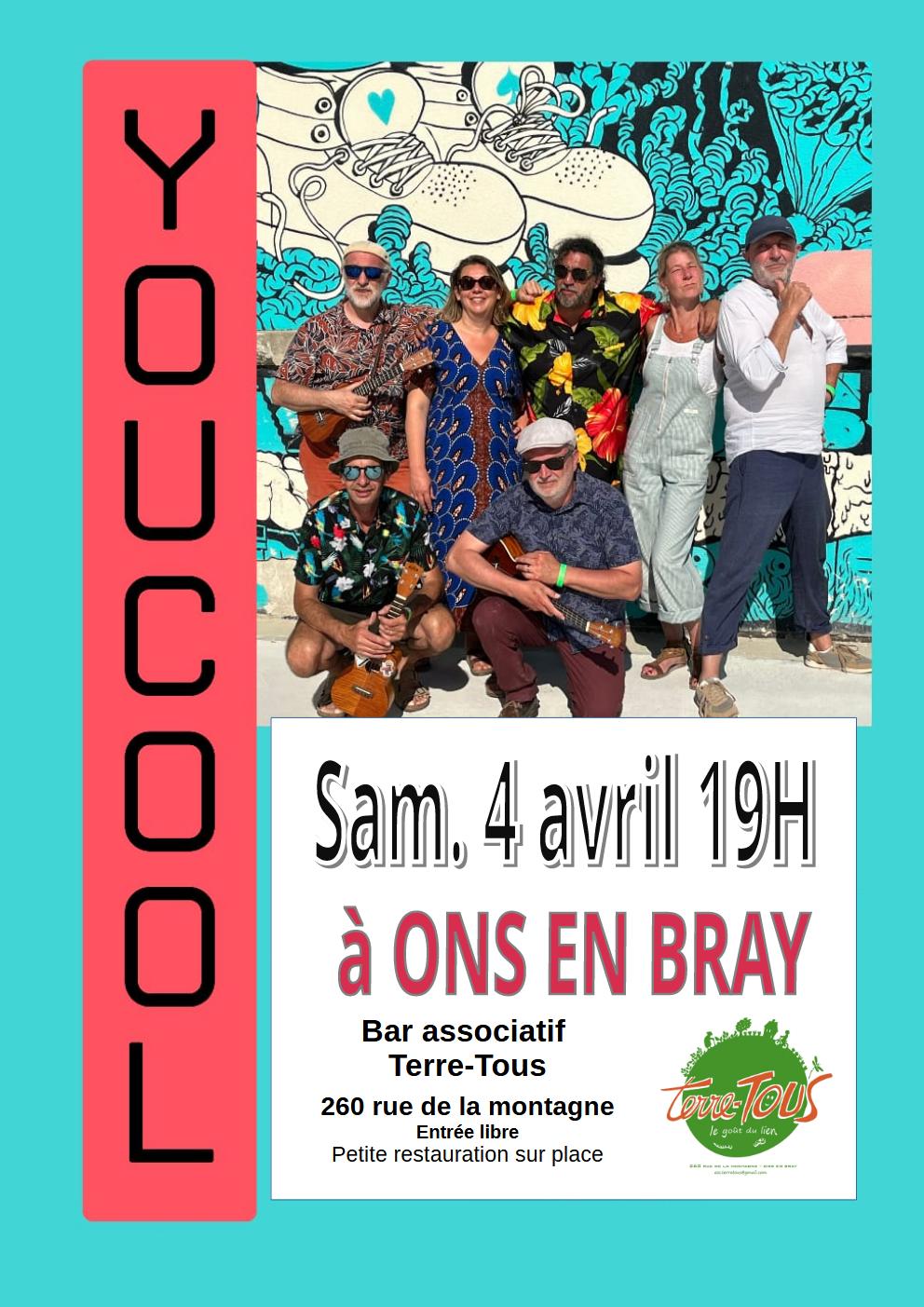 - Samedi : le groupe Youcool nous fait le plaisir de jouer demain soir après sa répétition à TT. Jacky et Jérôme nos animateurs de l'atelier ukulélé en font partie ! Pour les avoir vus récemment à la Salle Rostropovitch de Beauvais, je peux vous dire que ça va être joyeux et ...cool bien sûr;)