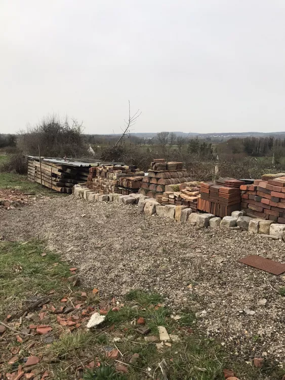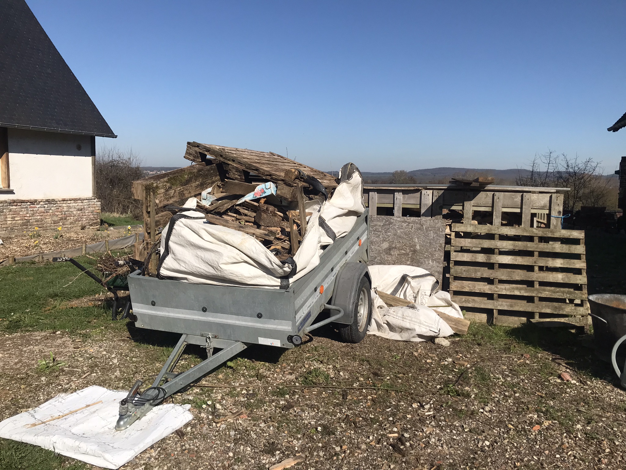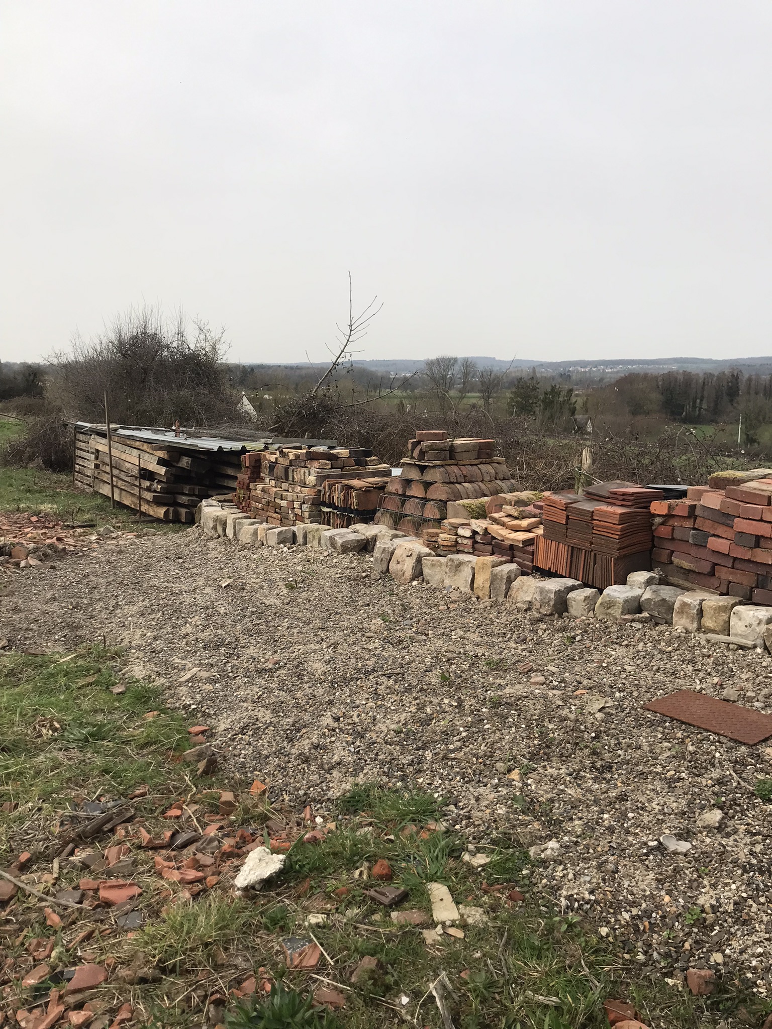 - François n'arrête jamais : il a entrepris, avec l'aide de Christophe cette fois, de déménager le bois et les tôles entreposées depuis des lustres à l'entrée du site à droite. Mais comme ce n'était pas assez, ils ont aussi bougé avec leurs bras et leur tête les gros morceaux du chêne Notre Dame. Trop forts !