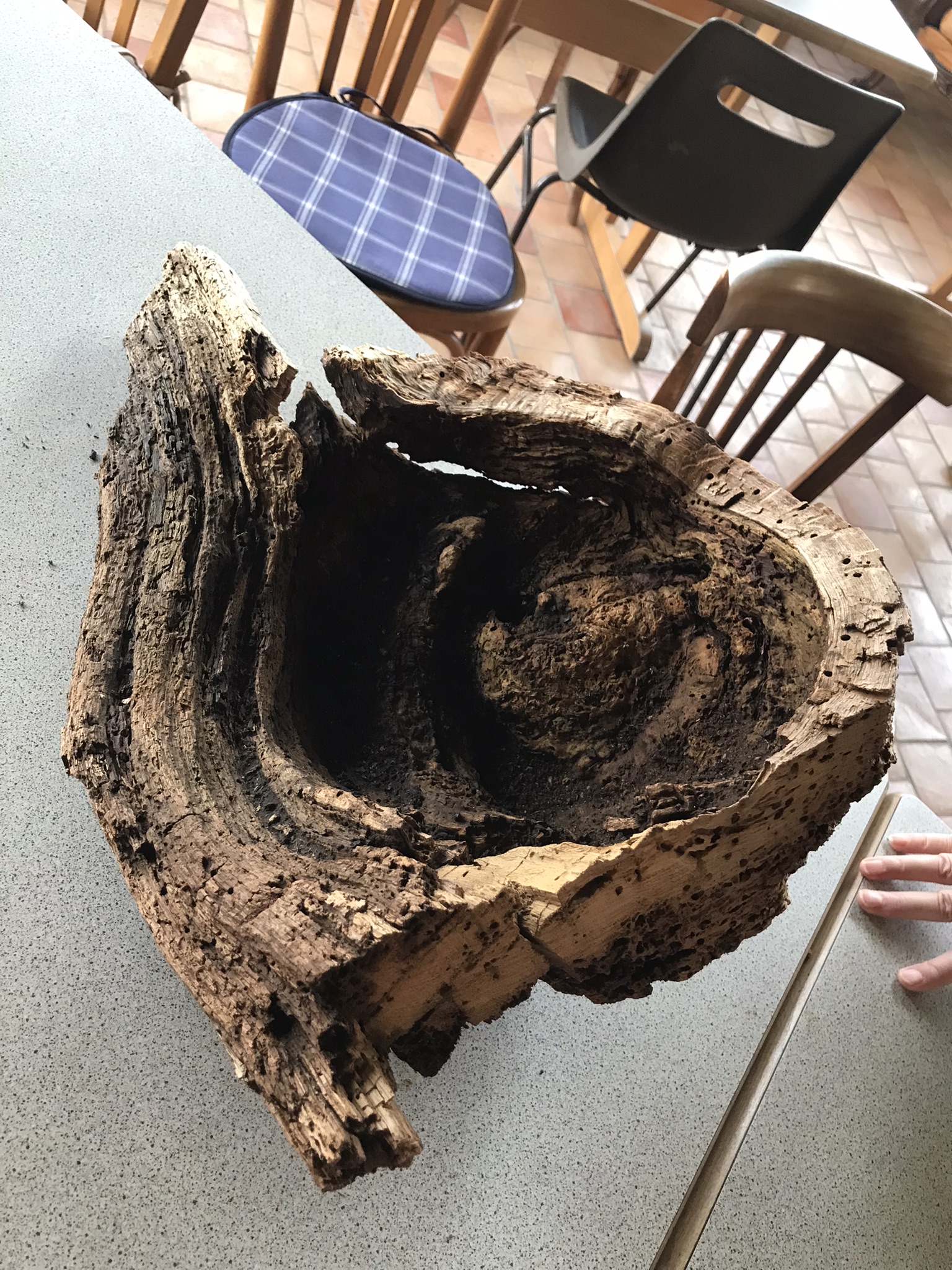 Céline est repartie avec un morceau du chêne pour y loger une création féminine. A suivre.