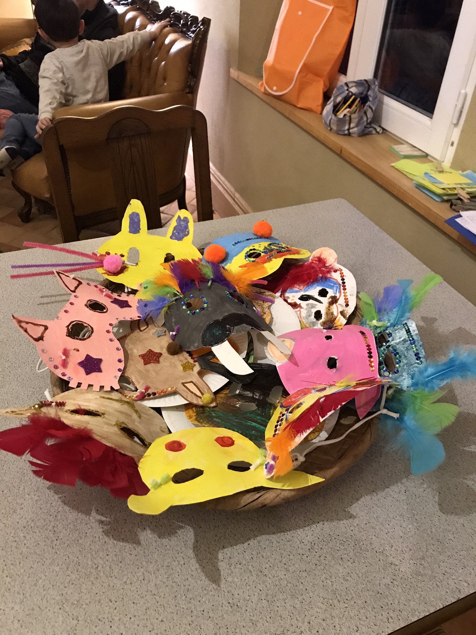- Notre fête organisée au pied levé pour Mardi Gras a déjà son petit succès : 8 enfants sont venus avec leurs parents ce soir confectionner leurs masques avant de défiler mardi prochain.