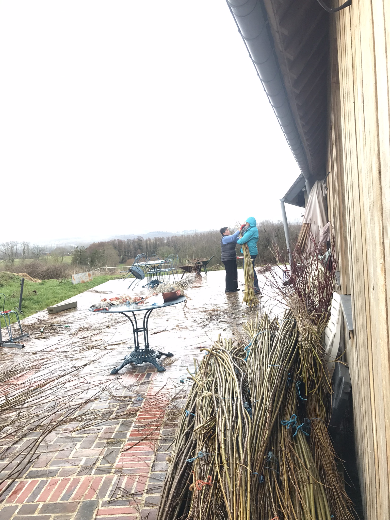 - les vanniers.ières ont bien trié et bottelé l'osier qui attendait encore sur la terrasse depuis la récolte. Il ne reste presque plus rien.