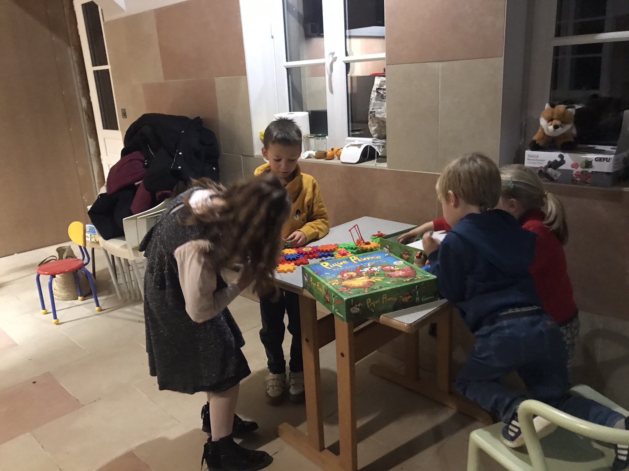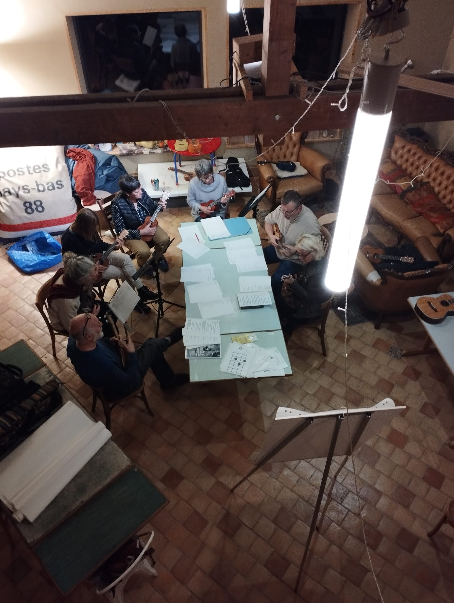 Une autre dizaine de personnes ont conversé lors du café philo sur un cas de conscience (agir pour limiter les dégâts, ou laisser arriver le pire). ça parait simple dit comme ça mais ce fut un vrai casse tête. Et puis nous nous sommes interrogés sur la manière d'encadrer et/ou laisser s'exprimer la vague "Mee too", quelles que soient les conséquences. Au menu du prochain café philo il sera question de démocratie et de laïcité. - Les adeptes de la vannerie ont pris leur rythme. - Après un atelier de ukulélé sympa, Jacky et Jérôme ont tenu le bar qui a fait le plein hier soir grâce au groupe Sidjeal'&Co, et à leurs amis des environs de Gournay. Ce fut inter-générationnel et chaleureux. En plus des terrines toujours appréciées, Dominique avait concocté une délicieuse soupe au potimarron. Un petit groupe de bénévoles s'est vite constitué pour faire face à la demande ! - Et puis cet après-midi, Mélanie et Nathalie ont entrainé des jeunes dans la confection de décorations de sapins en pâte à sel, tandis que d'autres ont fait le tri dans 500 pièces à répartir en quatre différents puzzles.