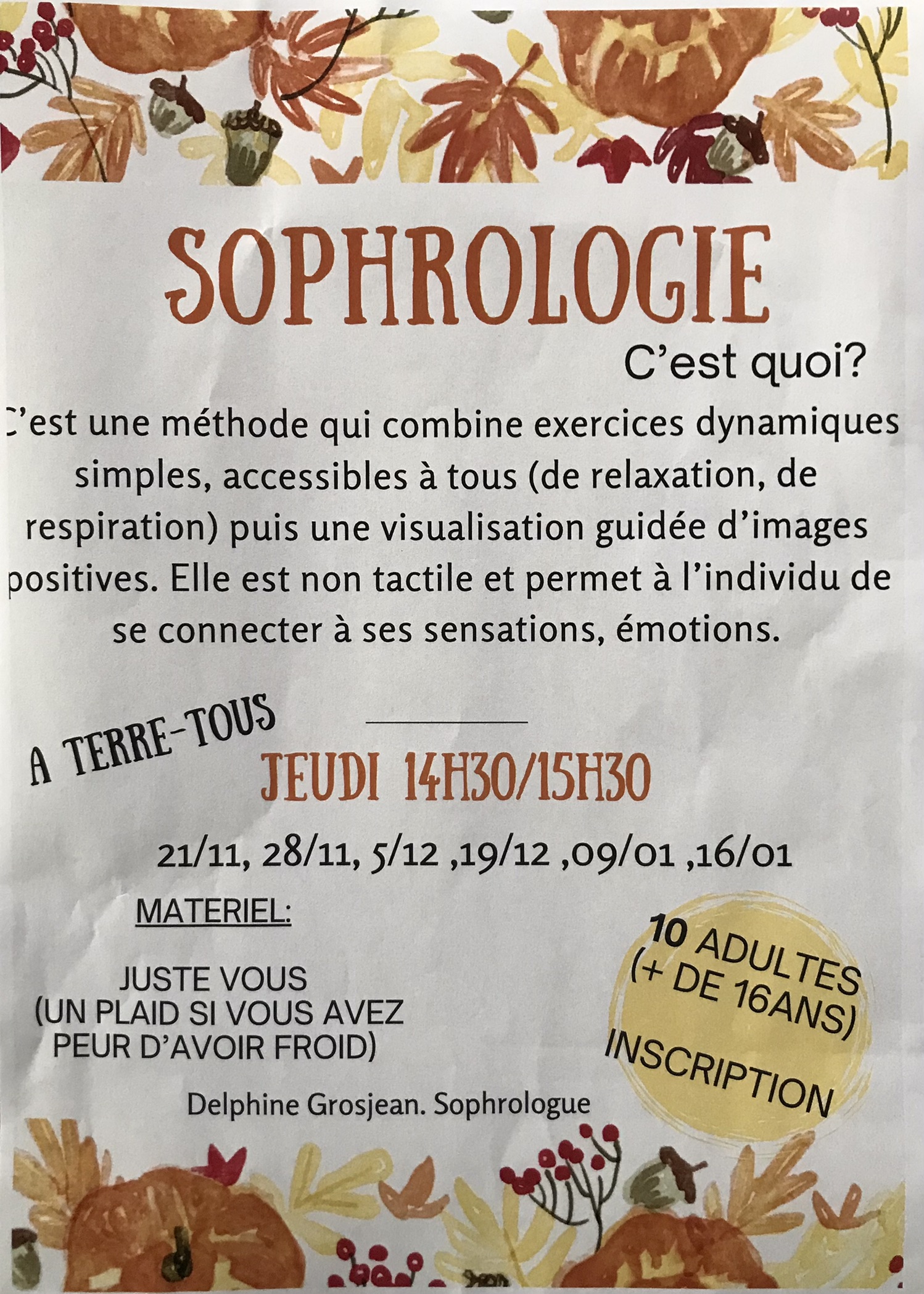 Deux premiers ateliers autour de la relaxation se sont déroulés avec une petite dizaine de participants chacun ; un seul homme ! ! ! comme si seules les femmes avaient besoin de se relaxer, on n'y croit pas. La suite cette semaine : n'hésitez pas, ça ne peut pas vous faire de mal.