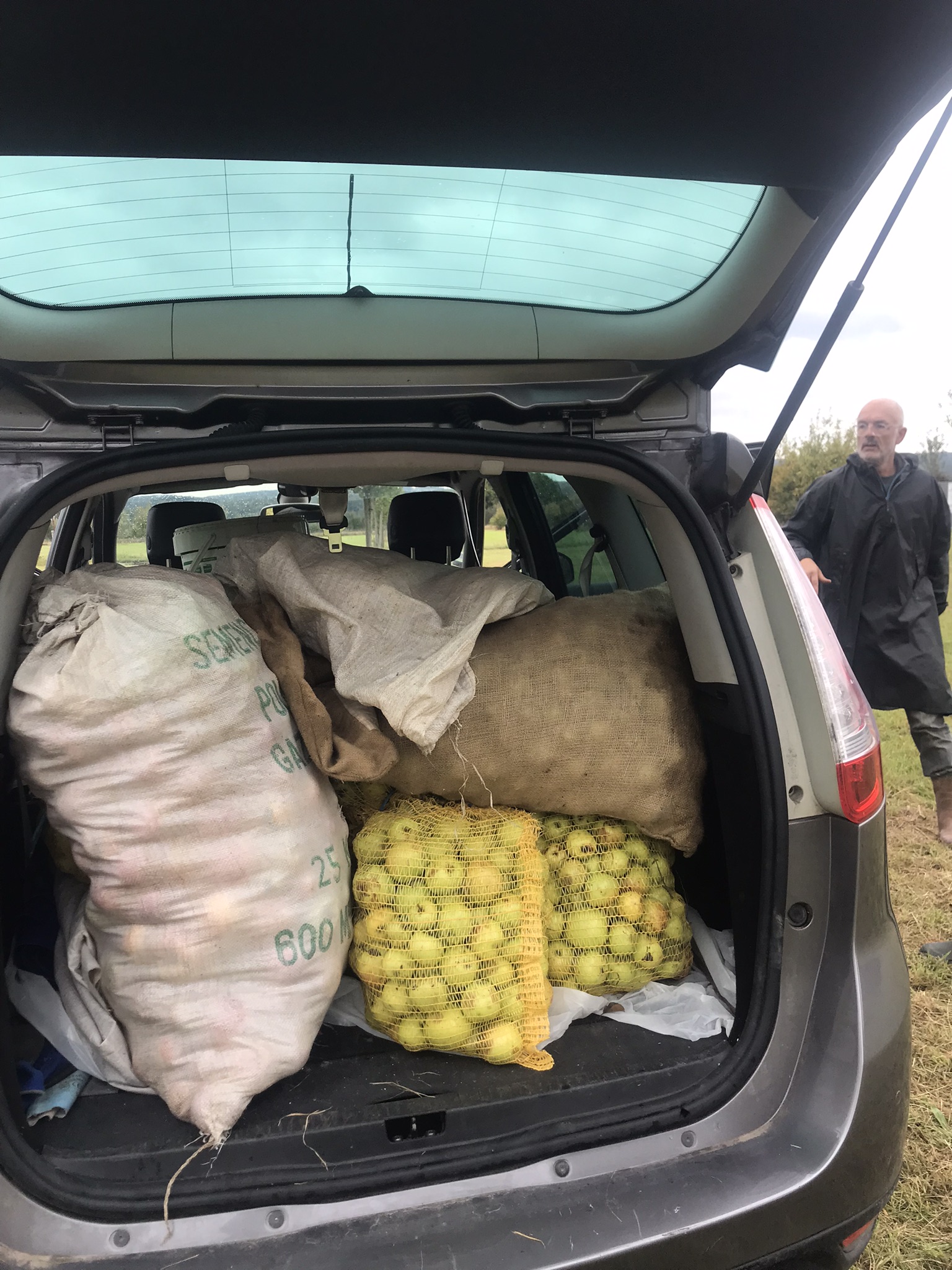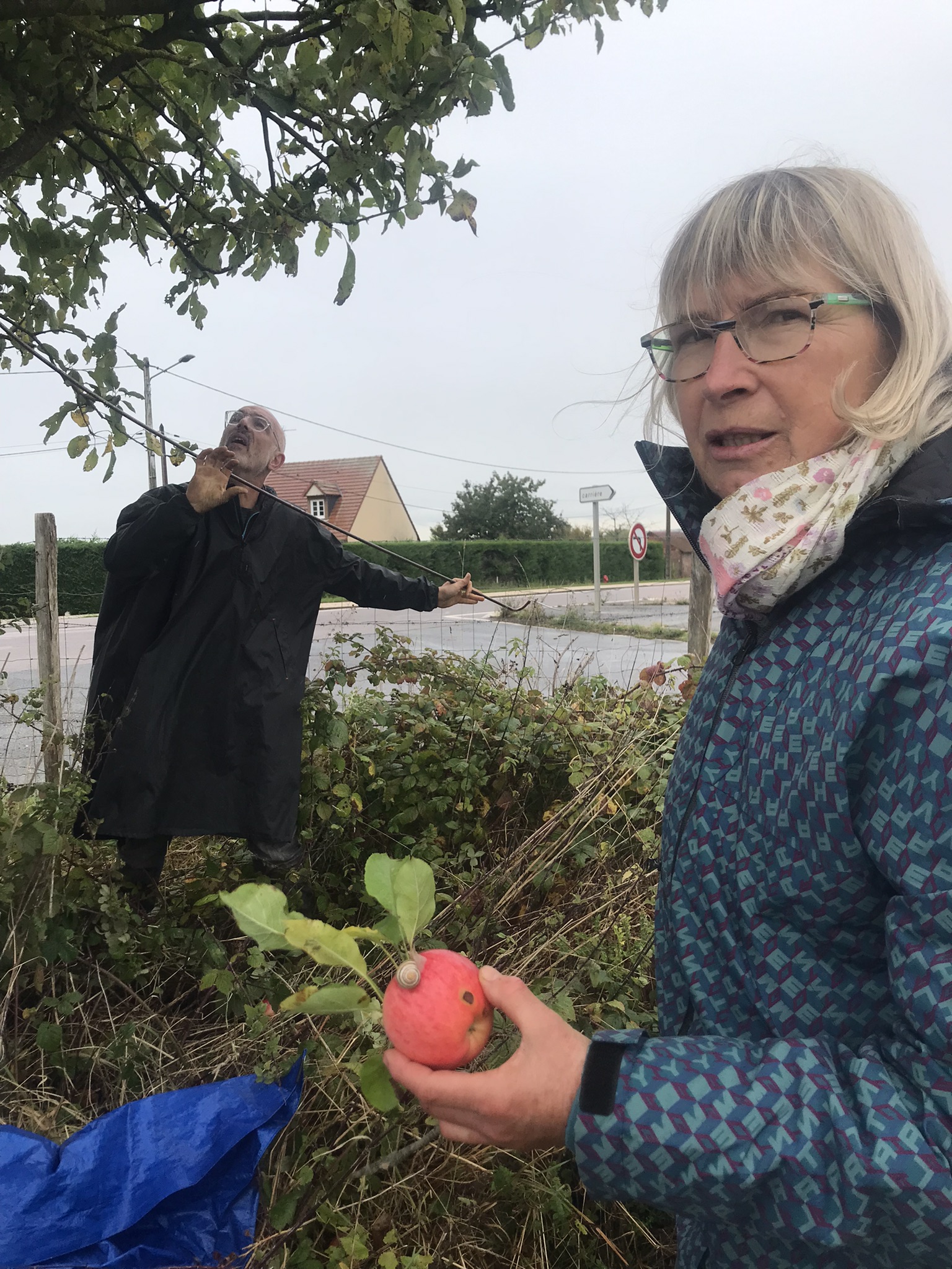 Pendant ce temps Christine, Nicole, Christophe et Caroline ont récolté une belle quantité de pommes dans le verger d'Edilians devant la carrière d'argile d'Ons en Bray.