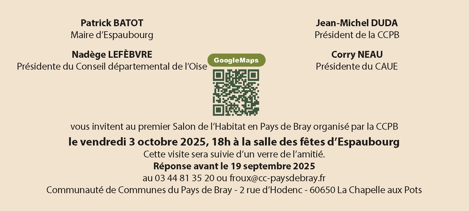 - 03 et 04 Octobre : Salon de l'Habitat à Espaubourg, avec un focus sur l'utilisation de la terre crue le 03 à 15h et 15h30, et d'autres matériaux naturels. L'exposition de photos exposées Place de l'Eglise fait partie des Photaumnales 2025.